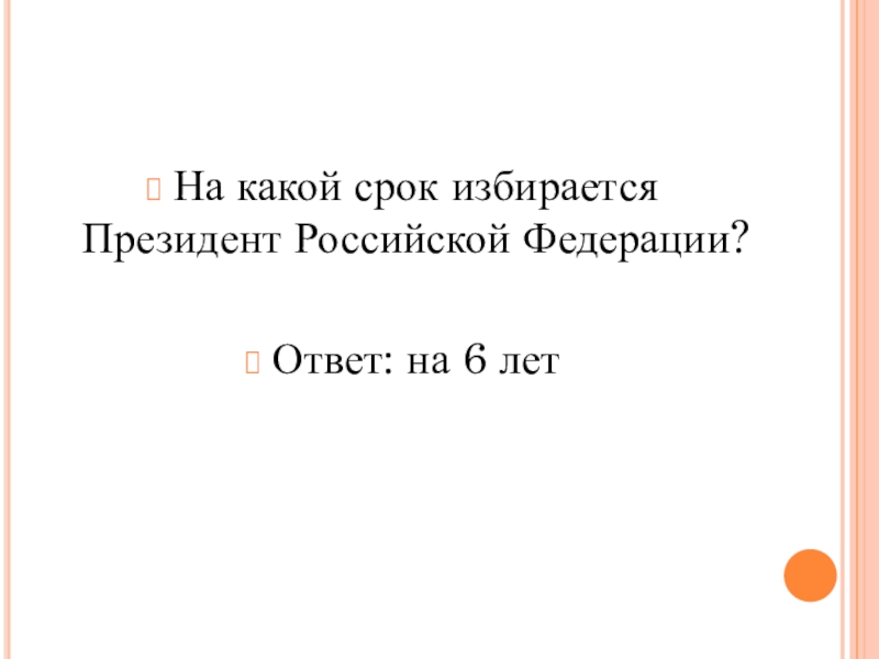 Слайд 8На какой срок избирается Президент Российской Федерации?