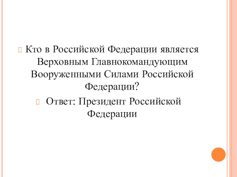 Слайд 9Кто в Российской Федерации является Верховным Главнокомандующим Вооруженными Силами Российской Федерации?