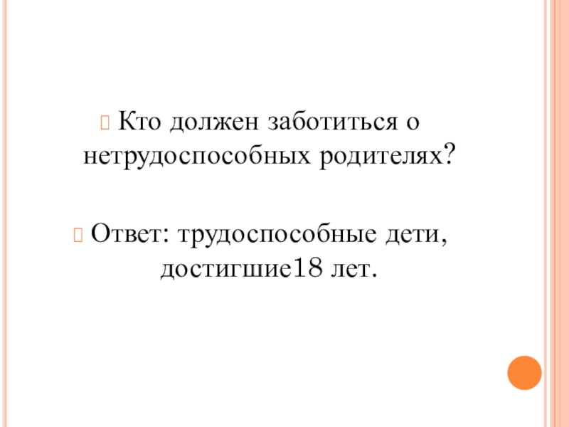 Кто должен заботиться о нетрудоспособных родителях? Ответ: трудоспособные дети, достигшие18 лет.