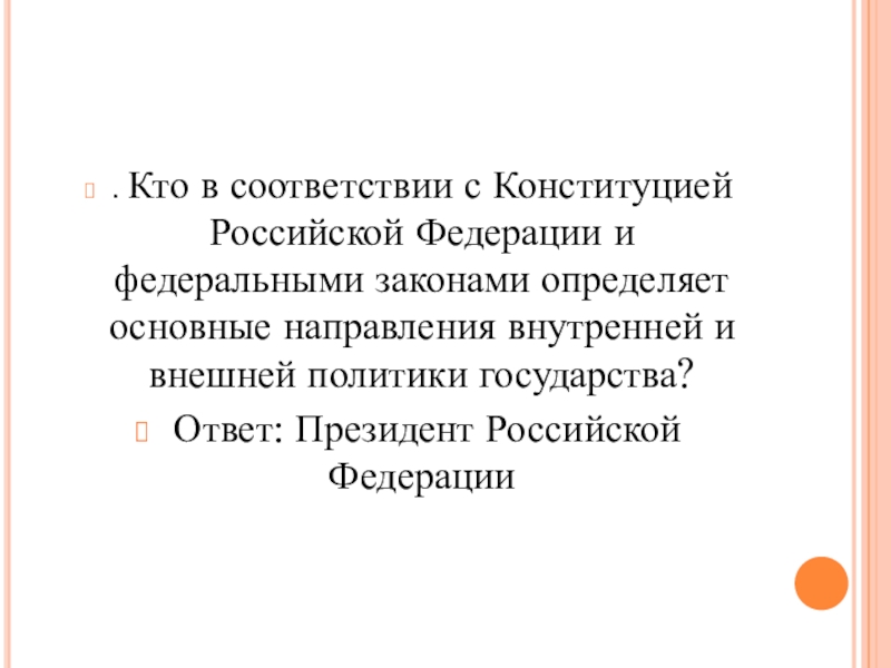 . Кто в соответствии с Конституцией Российской Федерации и федеральными законами определяет основные направления внутренней и внешней