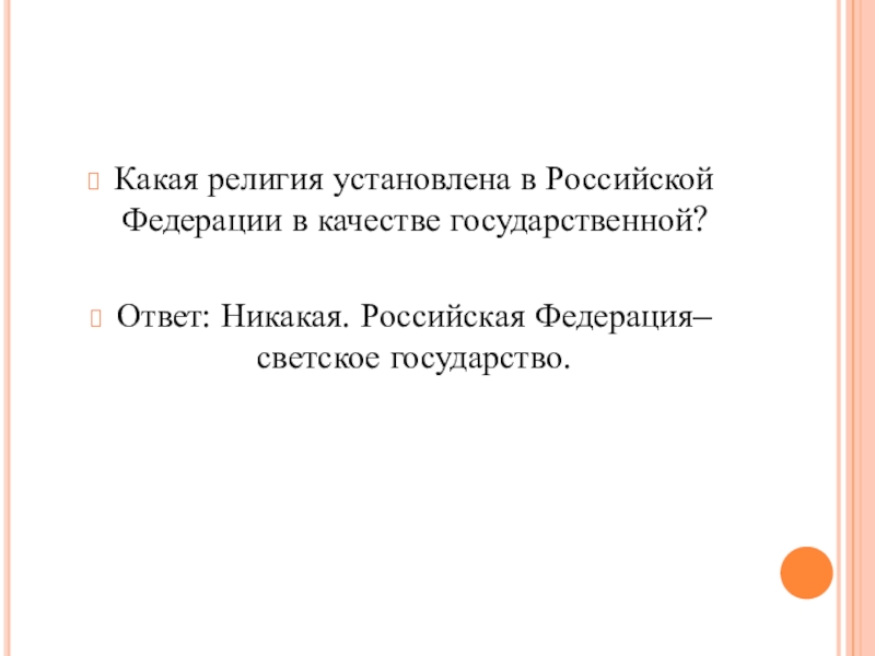 Слайд 4Какая религия установлена в Российской Федерации в качестве государственной?