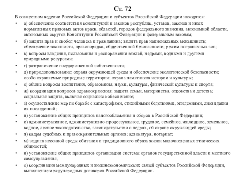 В совместном ведении Российской Федерации и субъектов Российской Федерации находятся: