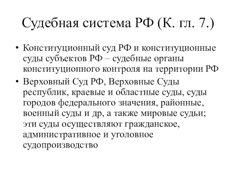 Слайд 15Судебная система РФ (К. гл. 7.)