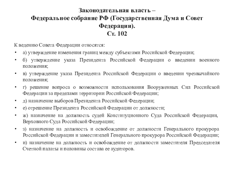 Федеральное собрание РФ (Государственная Дума и Совет Федерации).