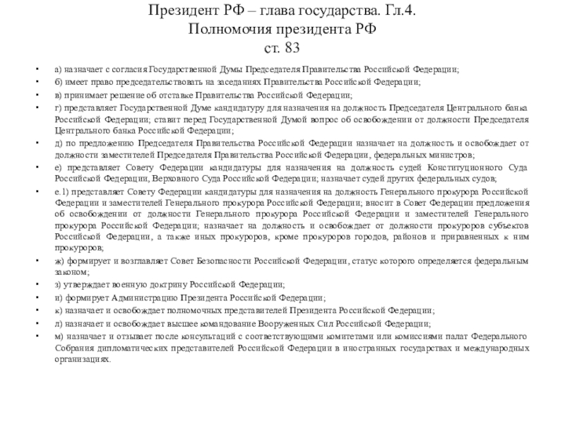 Слайд 10Президент РФ – глава государства. Гл.4.