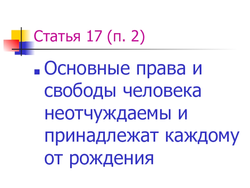 Статья 17 (п. 2)Основные права и свободы человека неотчуждаемы и принадлежат каждому от рождения