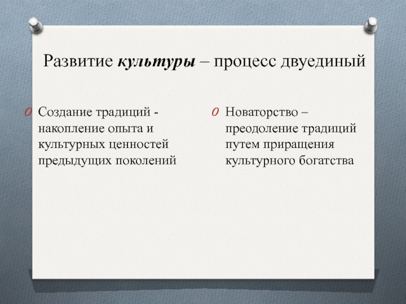 Новаторство – преодоление традиций путем приращения культурного богатства