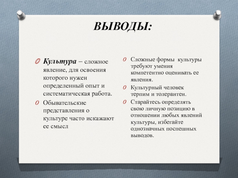 Старайтесь определять свою личную позицию в отношении любых явлений культуры, избегайте однозначных поспешных выводов.