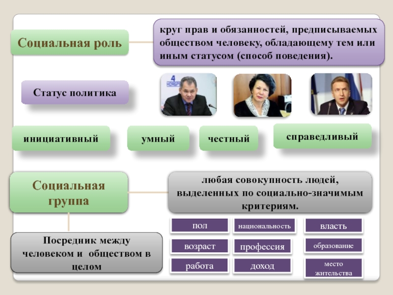 Это положение, которое человек занимает в малой, или первичной группе, в зависимости от того, как он оценивается по своим индивидуальным качествам.