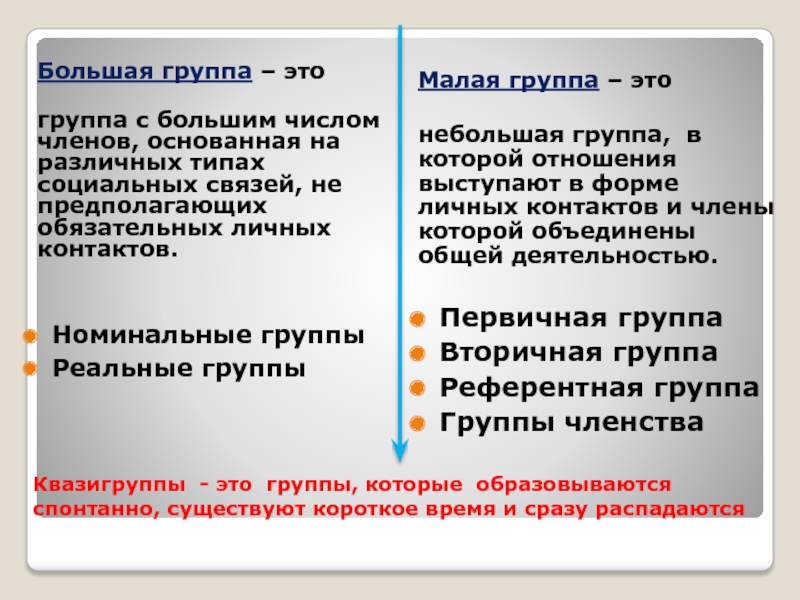 Квазигруппы - это группы, которые образовываются спонтанно, существуют короткое время и сразу распадаются