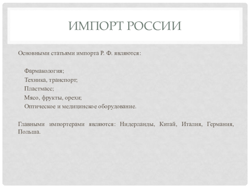 Крупнейший импортёр товаров в Россию — Германия ($21,2 млрд, 2009).