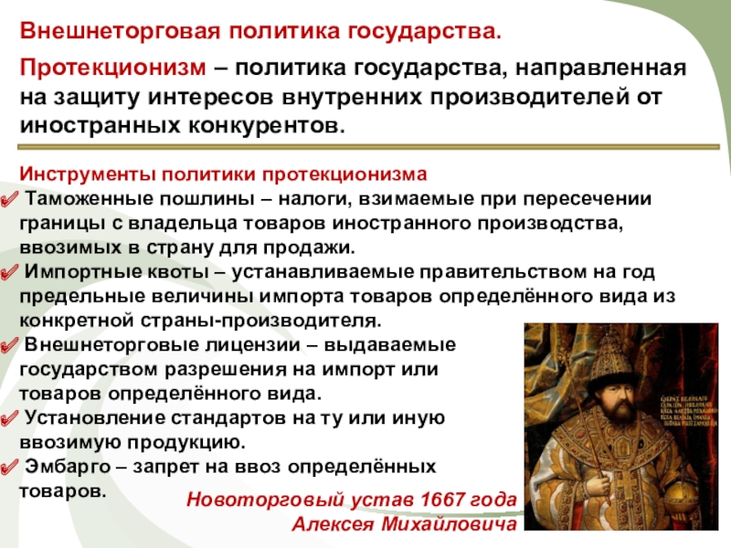Инструменты политики протекционизма
