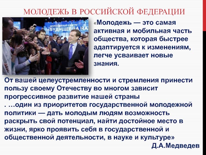 «Молодежь — это самая активная и мобильная часть общества, которая быстрее адаптируется к изменениям, легче усваивает новые знания.