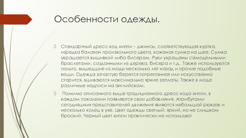 Слайд 8Характерные черты субкультуры «хиппи»