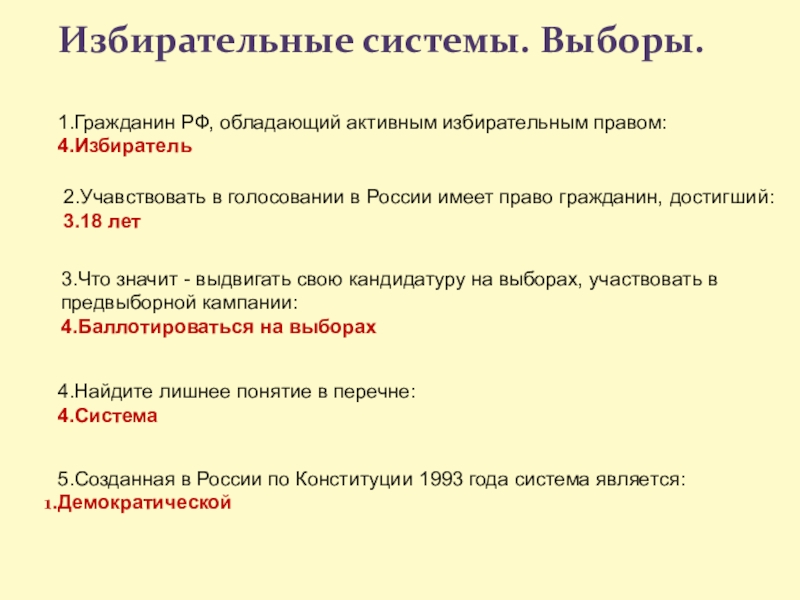 3.Что значит - выдвигать свою кандидатуру на выборах, участвовать в предвыборной кампании: