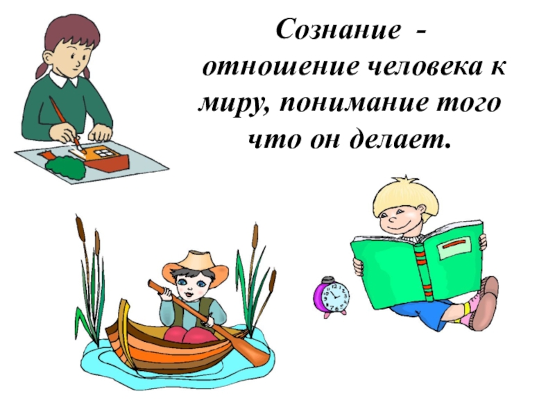 Слайд 3Сознание - отношение человека к миру, понимание того что он делает.