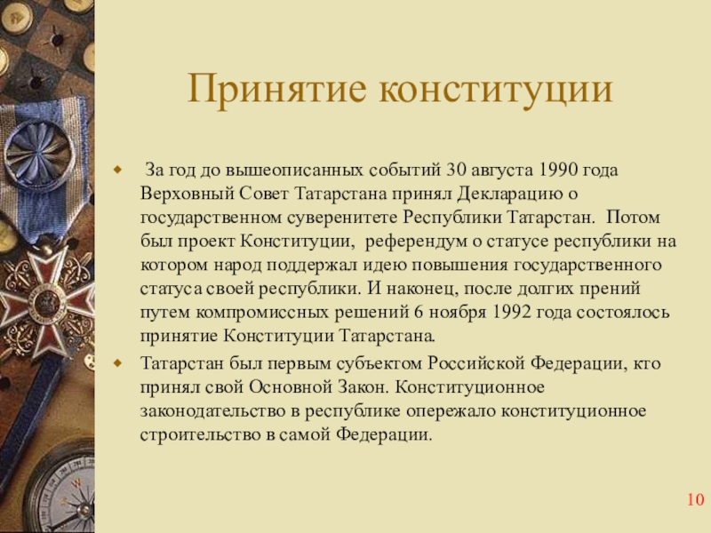 создает условия для укрепления демократии, социально-экономического развития Республики Татарстан, сохранения исторически сложившегося единства народов Российской Федерации на принципах федерализма.