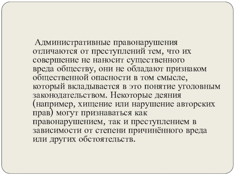 Слайд 15 Административные правонарушения отличаются от преступлений тем, что их совершение не наносит