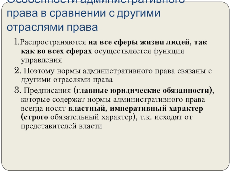 Слайд 4Особенности административного права в сравнении с другими отраслями права