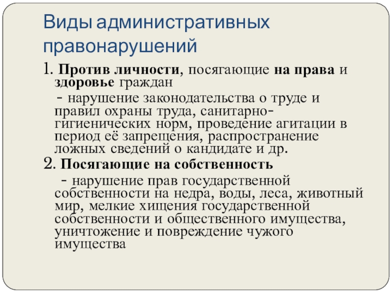 - нарушение прав государственной собственности на недра, воды, леса, животный мир, мелкие хищения государственной собственности и общественного имущества, уничтожение и повреждение чужого имущества