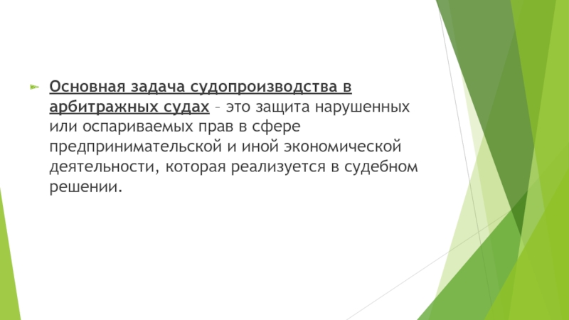 Слайд 4Основная задача судопроизводства в арбитражных судах – это защита нарушенных или оспариваемых