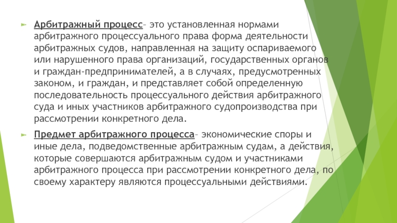 Слайд 6Арбитражный процесс– это установленная нормами арбитражного процессуального права форма деятельности арбитражных