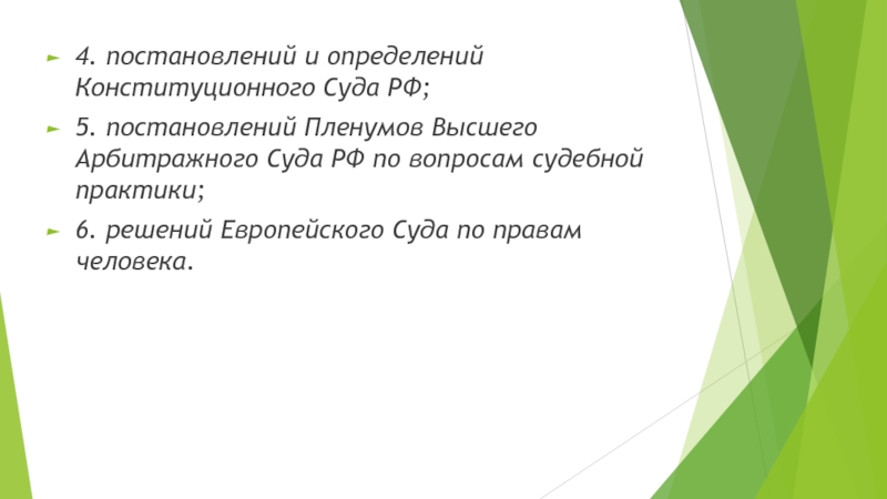Слайд 114. постановлений и определений Конституционного Суда РФ;