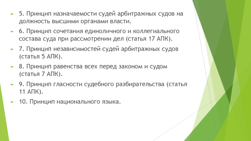 7. Принцип независимостей судей арбитражных судов (статья 5 АПК).
