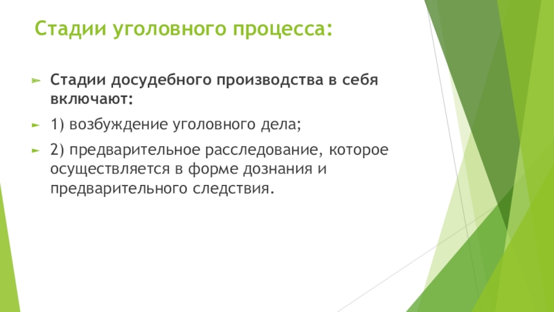 Стадии досудебного производства в себя включают: