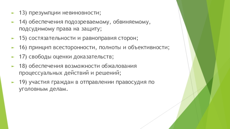 Слайд 913) презумпции невиновности;