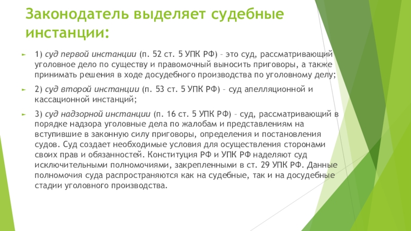 Слайд 6Законодатель выделяет судебные инстанции: