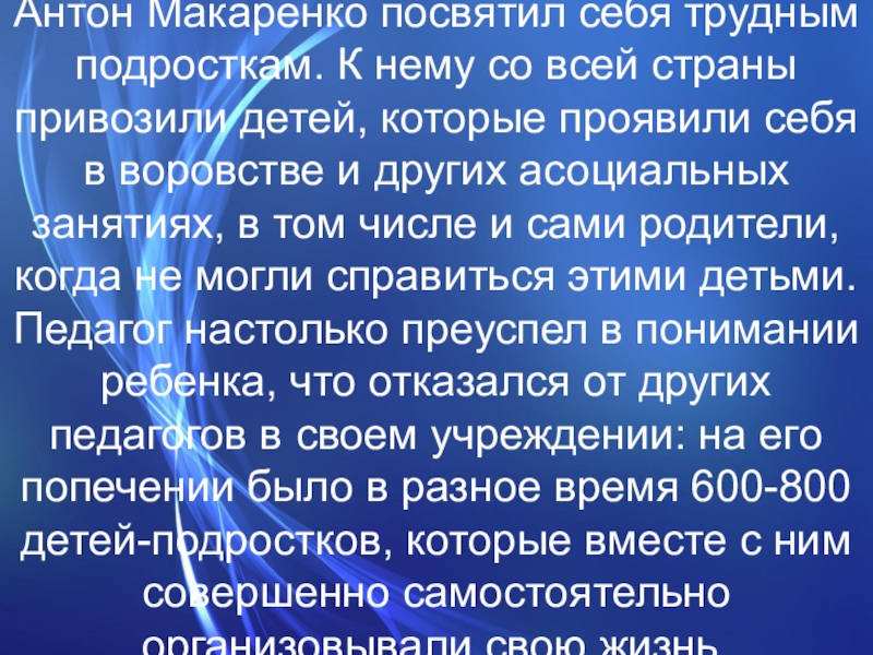 Слайд 3Антон Макаренко посвятил себя трудным подросткам. К нему со всей страны