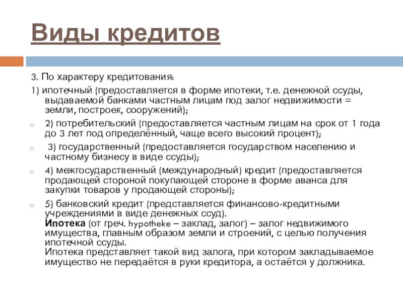 Ипотека (от греч. hypotheke – заклад, залог) – залог недвижимого имущества, главным образом земли и строений, с целью получения ипотечной ссуды.