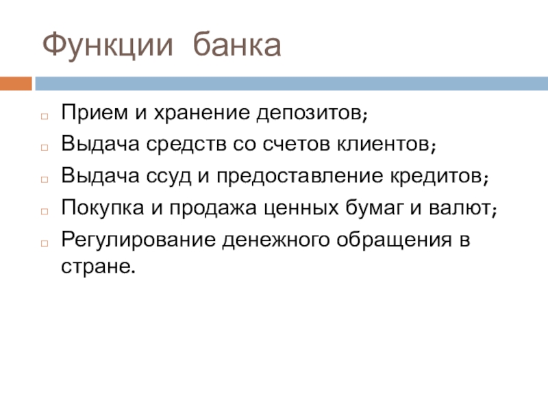 Банк (от итал. banco – скамья) – финансовая организация, учреждение, производящее разнообразные виды операций с деньгами и ценными бумагами и оказывающее финансовые услуги правительству, предприятиям, гражданам и друг другу.