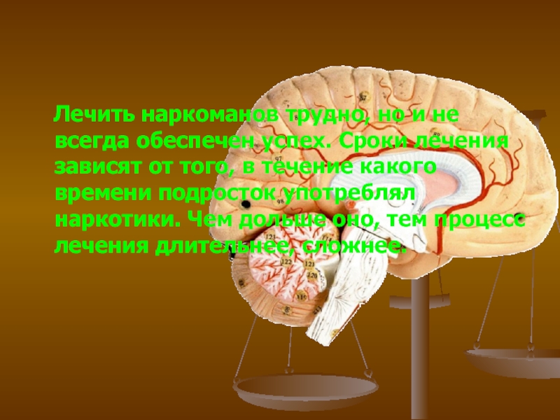 Слайд 7 Лечить наркоманов трудно, но и не всегда обеспечен успех.