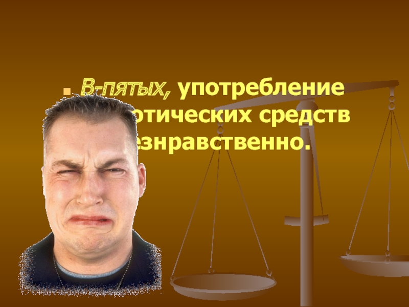 Слайд 13В-пятых, употребление наркотических средств безнравственно.