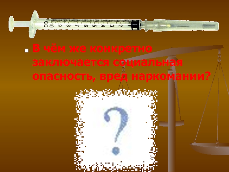 Слайд 8В чём же конкретно заключается социальная опасность, вред наркомании?