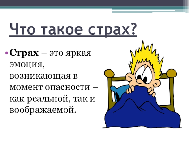 Что такое страх?Страх – это яркая эмоция, возникающая в момент опасности – как реальной, так и воображаемой.