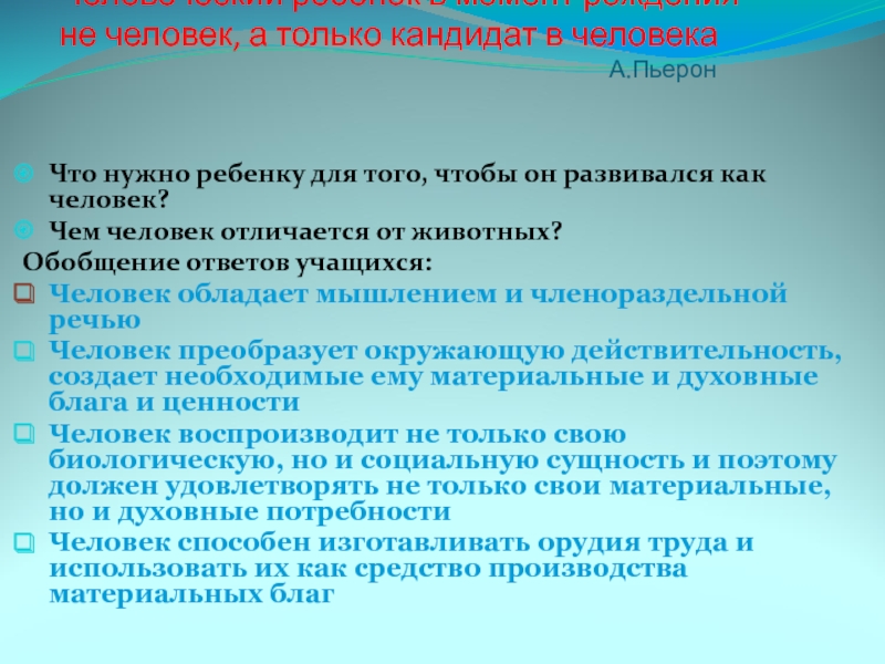 Чем человек отличается от животных?