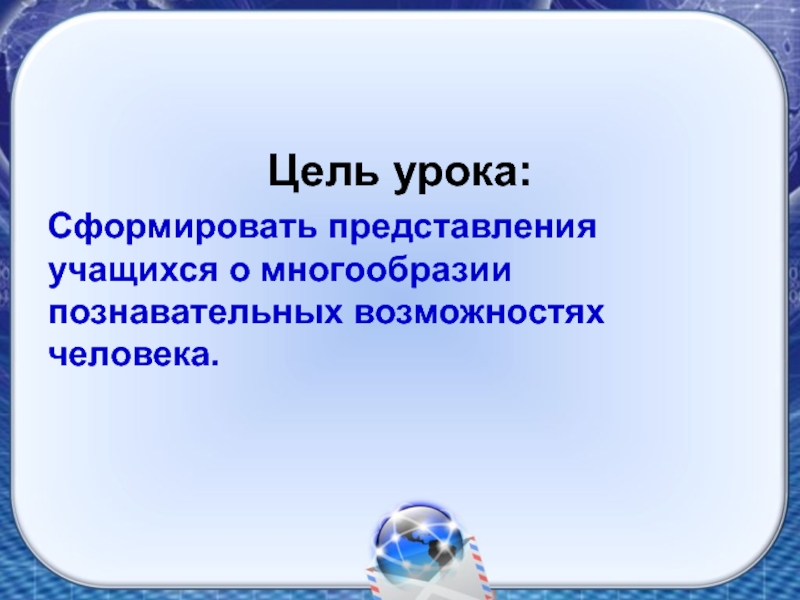 Сформировать представления учащихся о многообразии познавательных возможностях человека.