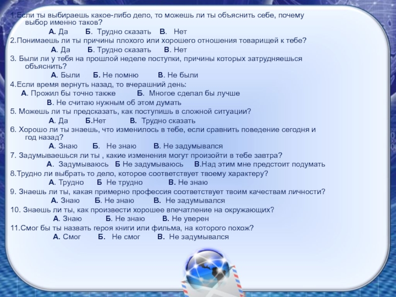 1.Если ты выбираешь какое-либо дело, то можешь ли ты объяснить себе,