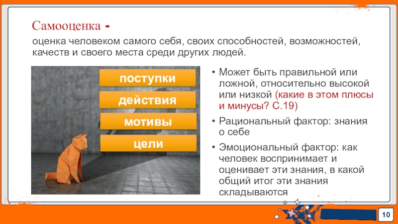 оценка человеком самого себя, своих способностей, возможностей, качеств и своего места среди других людей.