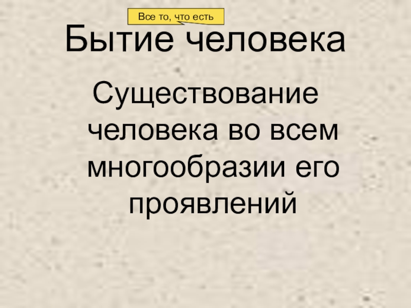 Бытие человекаСуществование человека во всем многообразии его проявленийВсе то, что есть