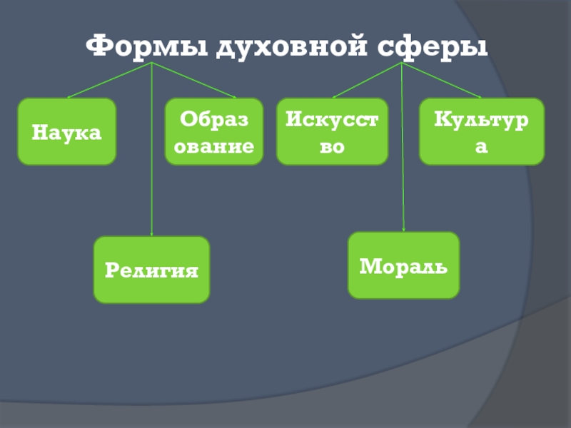 Формы духовной сферыНаукаМоральРелигияОбразованиеИскусствоКультура