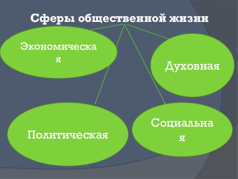 Сферы общественной жизниСоциальнаяДуховнаяПолитическаяЭкономическая