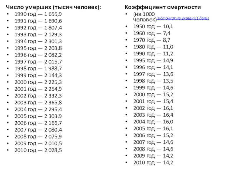 1990 — 13,4 на 1000 чел