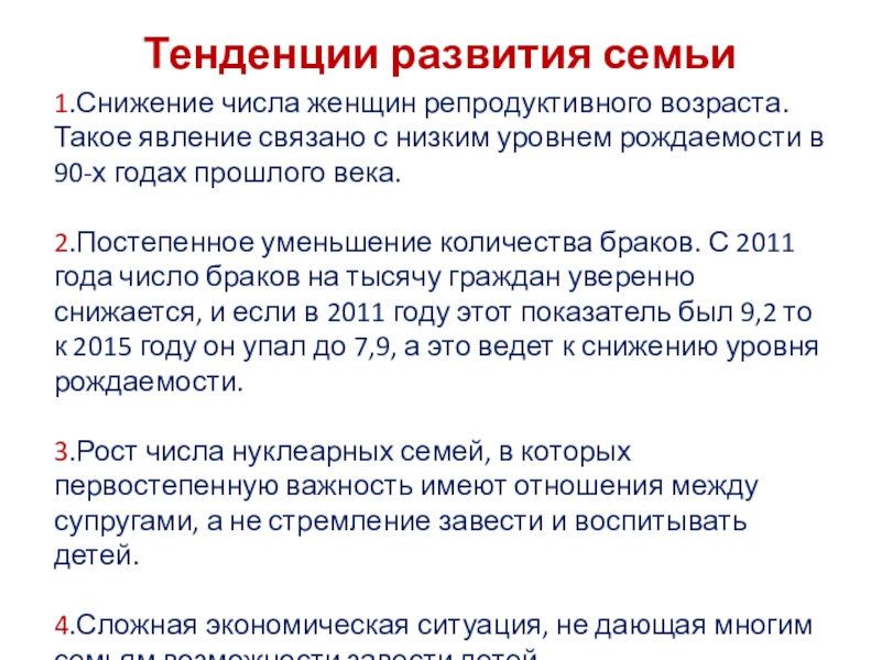 Тенденции развития семьи в РФ: