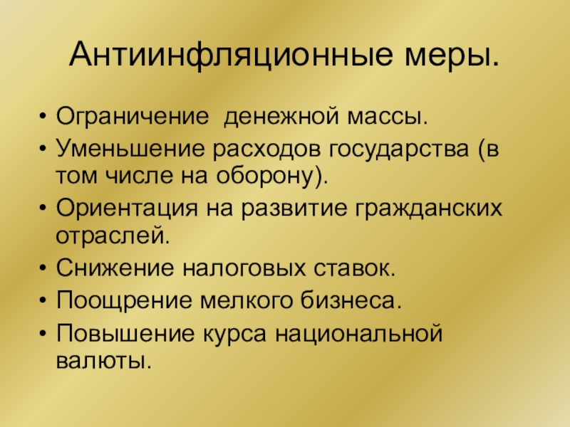 Дефляция – уменьшение количества находящихся в обращении денег.
