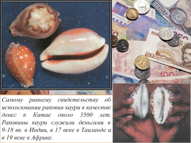Слайд 8Самому раннему свидетельству об использовании раковин каури в качестве денег в