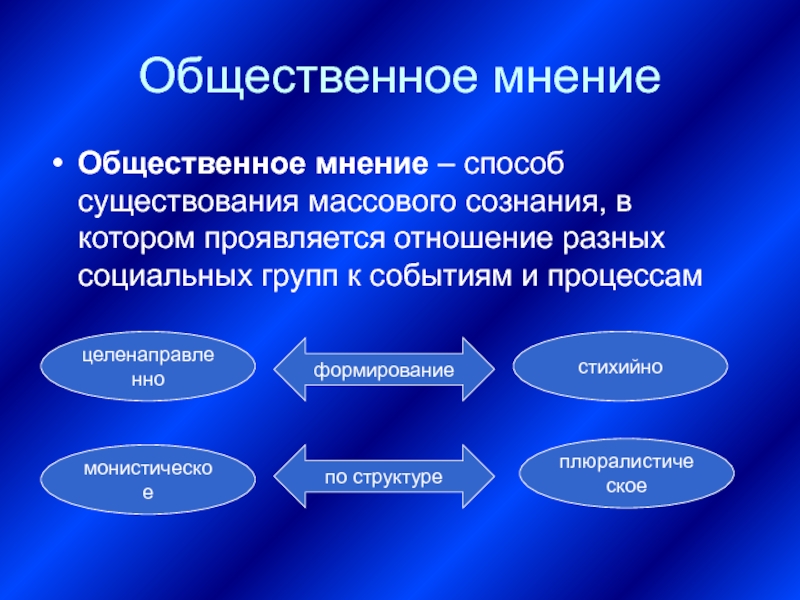 Общественное мнение – способ существования массового сознания, в котором проявляется